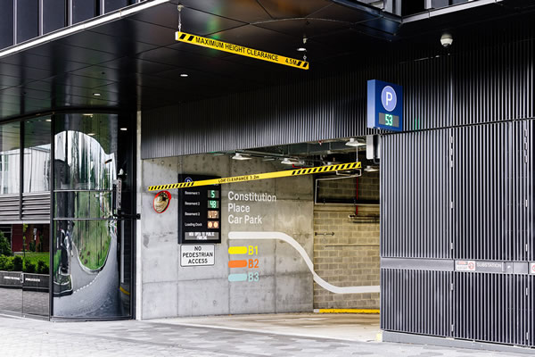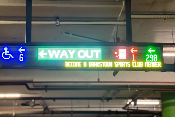The first stage involved installing a parking guidance system (PGS) in the existing multi-deck car park. The two undercover levels have had sensors installed in each bay and use the familiar red and green lights to signal occupancy or availability. Way-finding signage and accurate bay counts ensure drivers are directed to available parking spaces quickly upon entering.